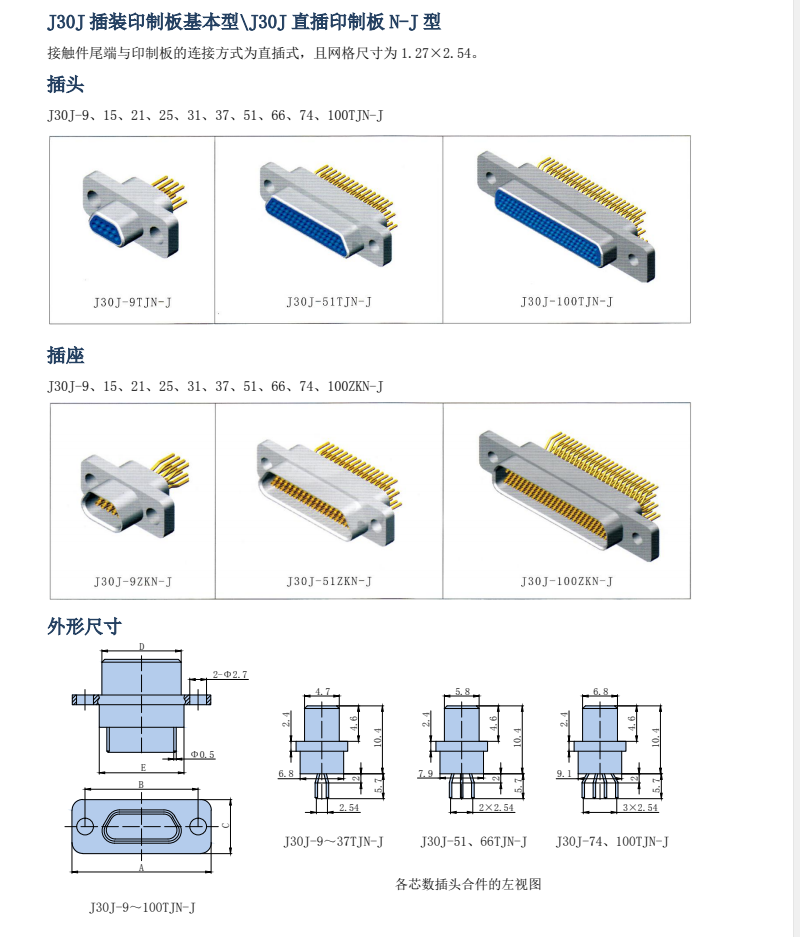 J30J基本型系列連接器,絞線式彈性插針,接點(diǎn)密度高,端接形式為焊接式,壓接式,直插印制板、彎式印制板焊接,體積小,廣泛用于儀器儀表設(shè)備之間的連接。