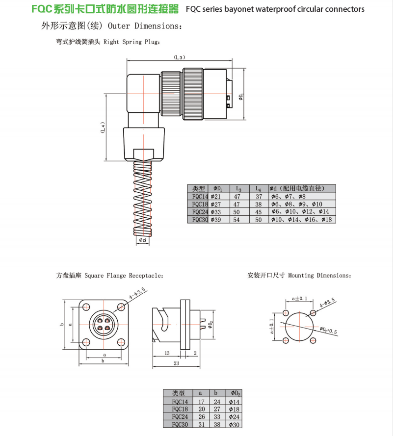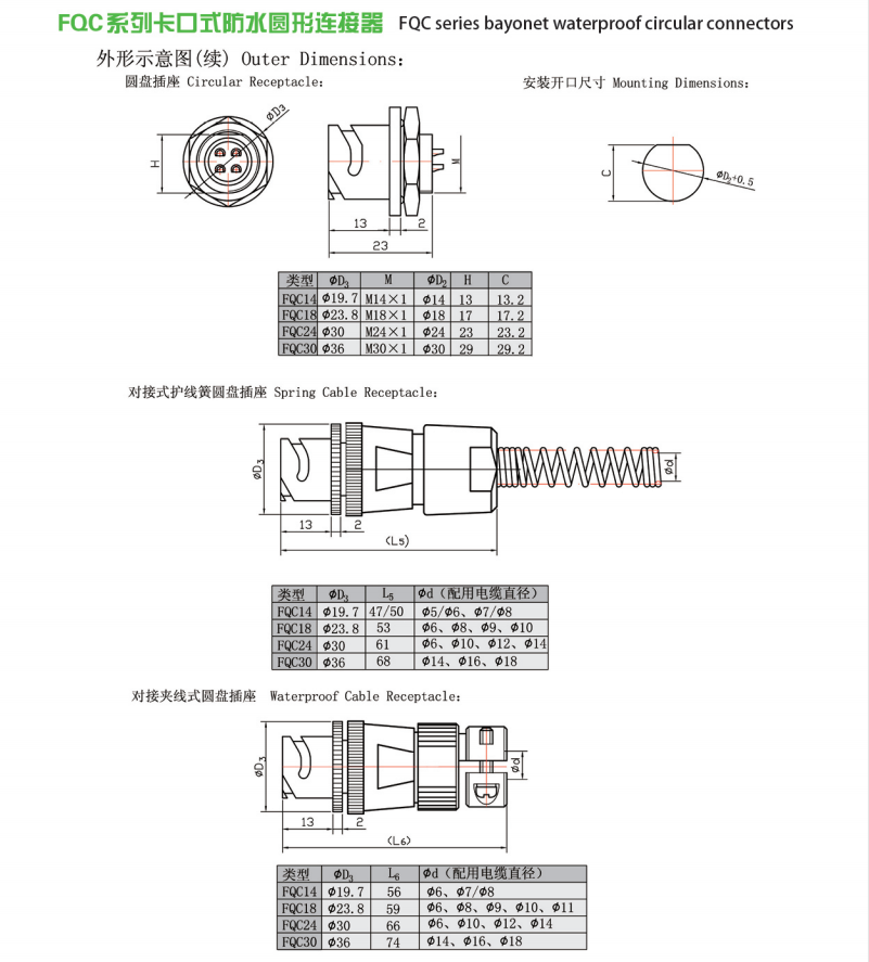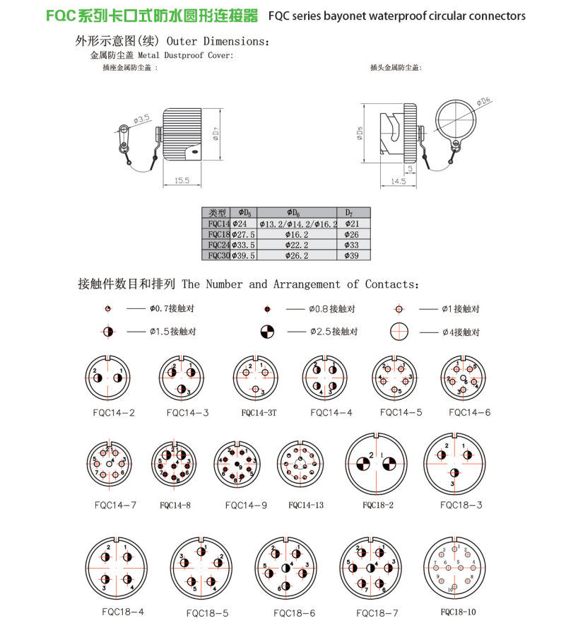 FQC系列圓形電連接器,是FQ系列改進產(chǎn)品,外殼體采用機加工,安裝尺寸,接觸件排列完全相同,體積小,抗振動,防水性能好,連接快捷,廣泛用于各種電子設(shè)備的線路連接。