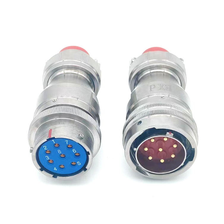 FB.EXd-1808ZJ11圓形對接式防爆電連接器,體積小,不銹鋼材料,質(zhì)地堅硬,耐高溫,防碰抗摔。接觸件8p,2.5mm直徑,額定電流25A,額定電壓1500V.插座有三種形式:方法蘭固定式,方法蘭移動式,圓形法蘭對接式。用處不同:方法蘭式固定在面板上,基本不改變位置。移動式與其相反,插座固定在移動支架上,哪里需要哪里使用。對接式連接電纜,兩頭連接在移動設(shè)備,隨時隨地連接使用。防爆電連接器每個鏈接處有密封設(shè)計,防水防爆。插頭與插座有卡扣連接,螺紋連接,客戶根據(jù)喜好選用。端接形式有焊接式和壓接式。